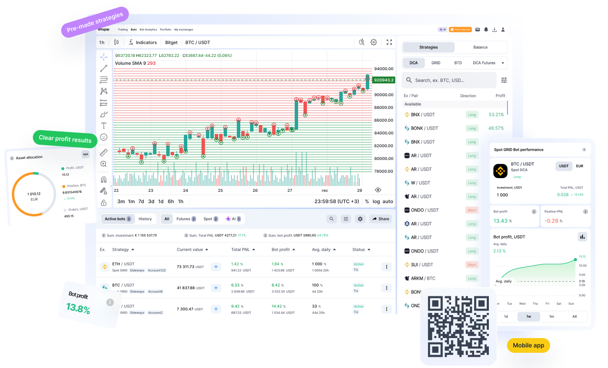 Bitsgap offers more than just trading bots. It’s a multi-functional crypto trading platform with smart orders and actionable analytics.